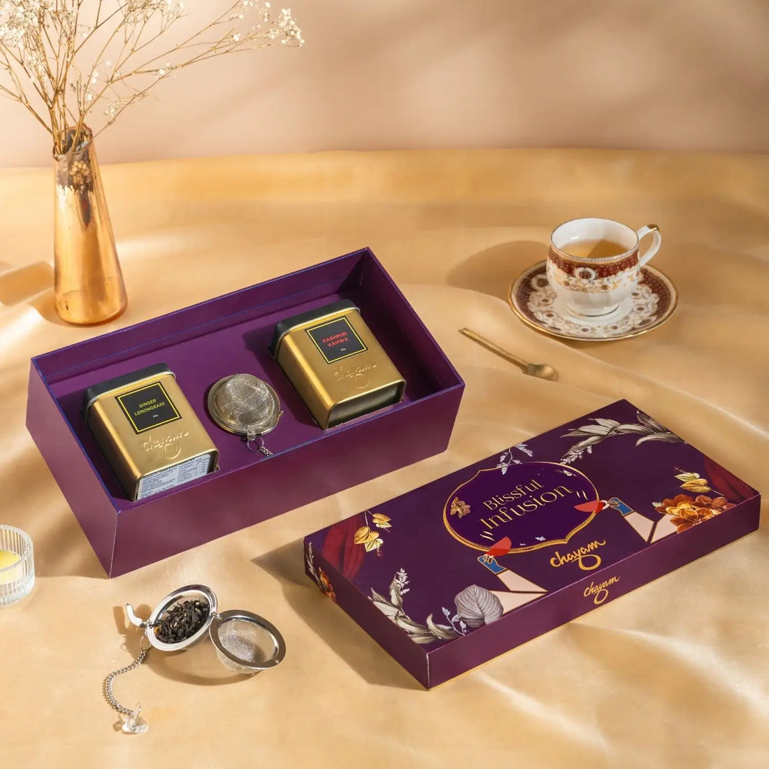 Blissful Infusion Gift Box | 2 Tea Tins & 1 Infuser | Thoughtful Diwali Gift
