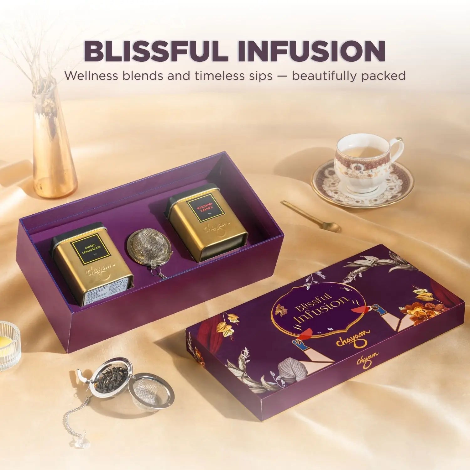 Blissful Infusion Gift Box | 2 Tea Tins & 1 Infuser | Thoughtful Diwali Gift