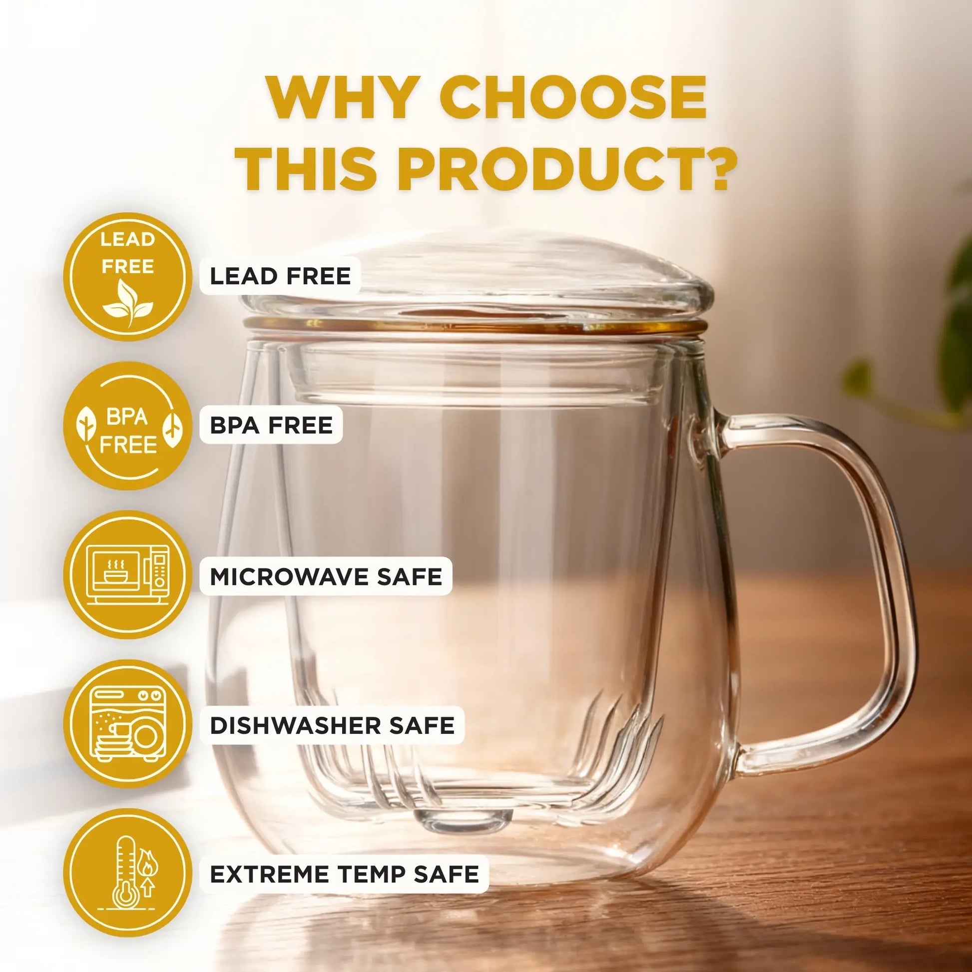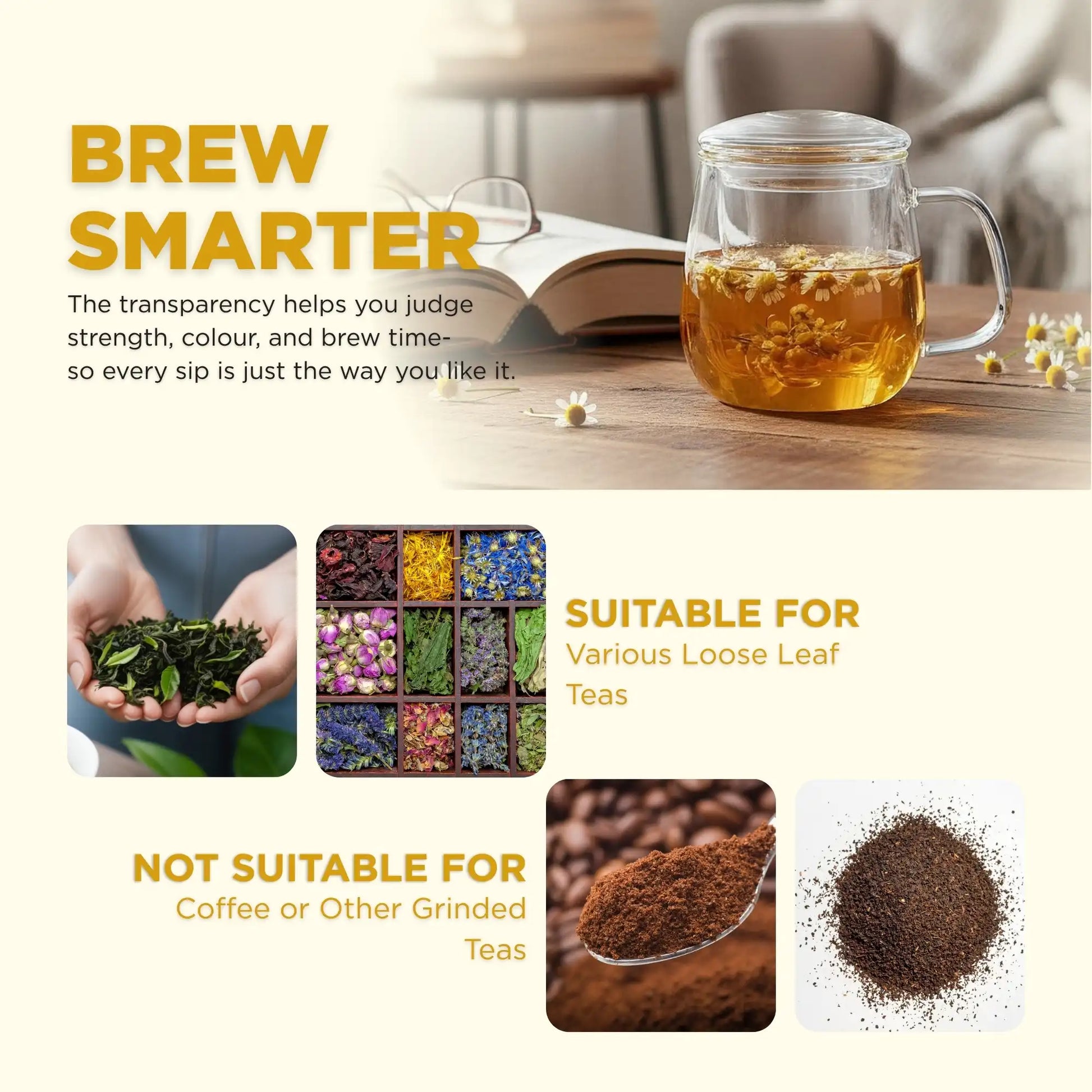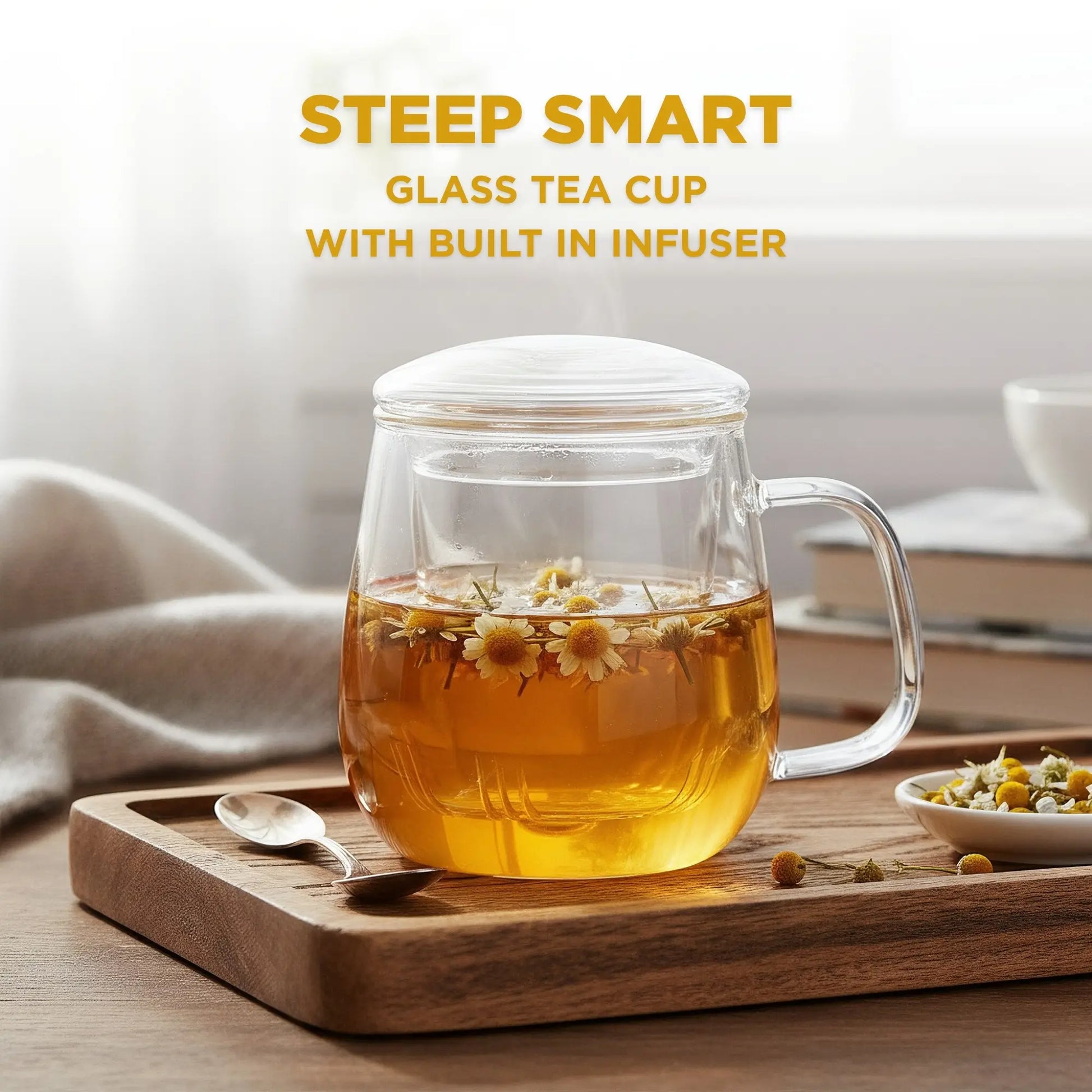 Brew beauty in every sip with Steep Smart — a clear glass cup with an elegant lid and built-in infuser. Watch your tea bloom, steep to perfection, and sip in serene comfort. Crafted for mindfulness, designed for everyday elegance.