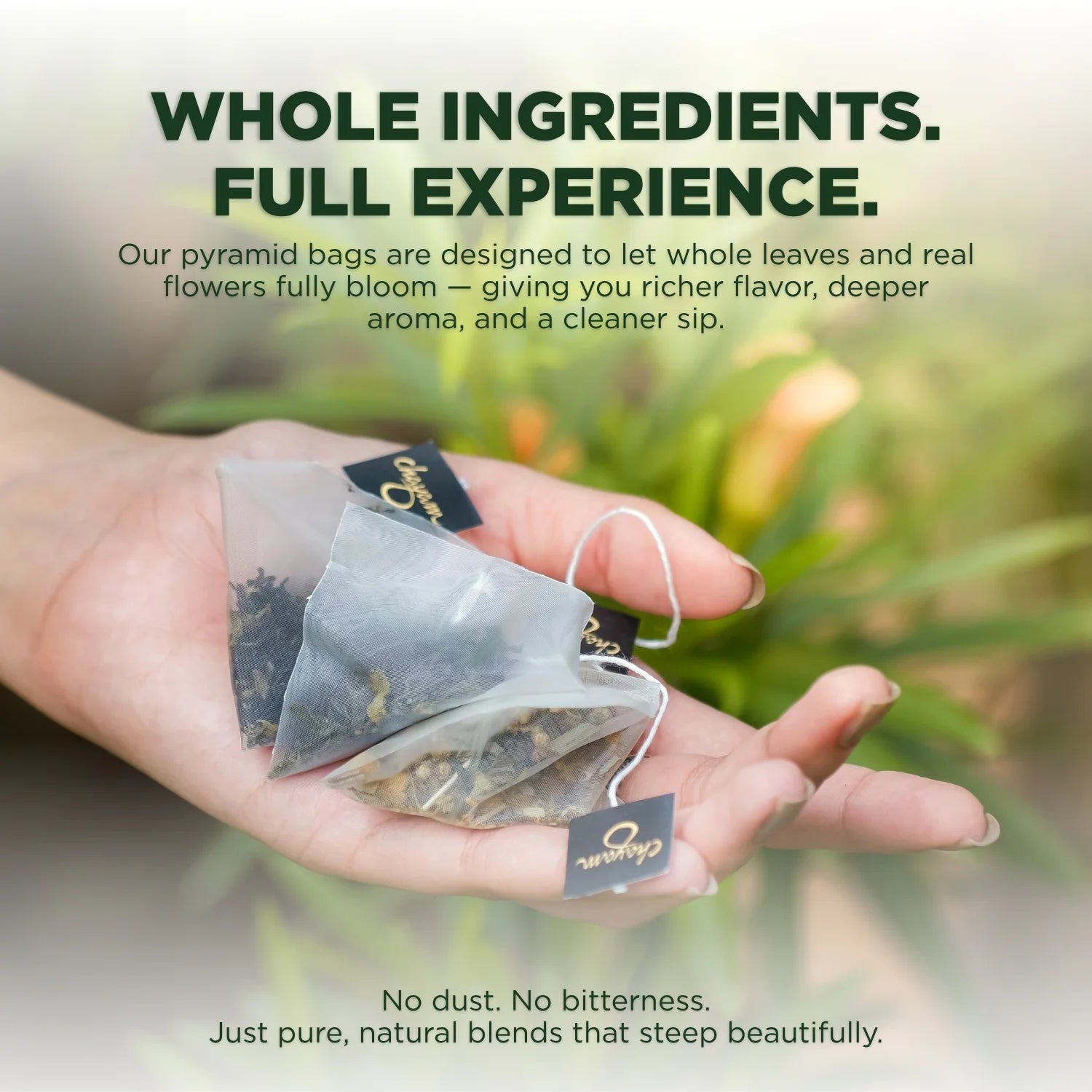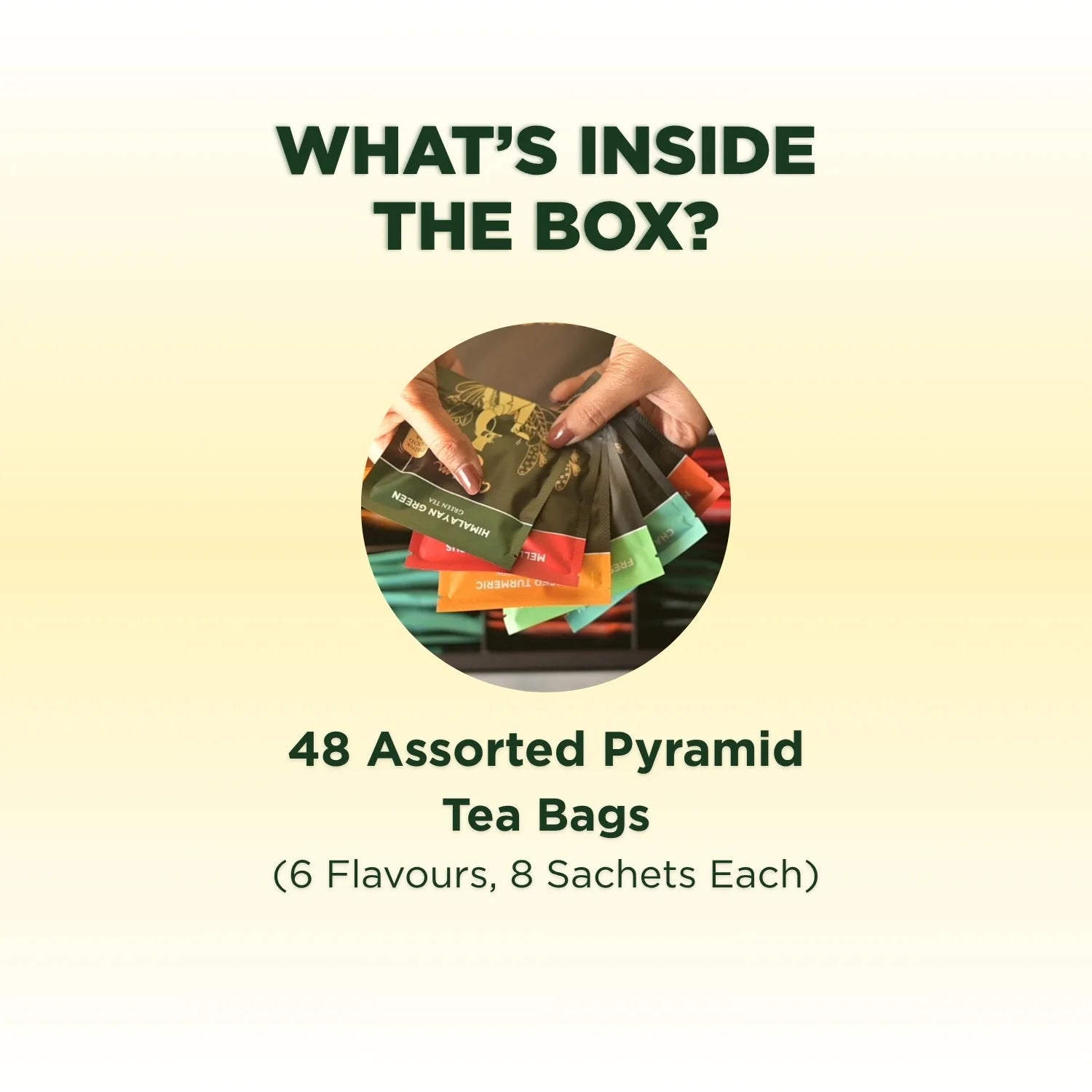 - 48 pyramid tea bags (6 flavours × 8 each) - Premium assorted green tea gift box