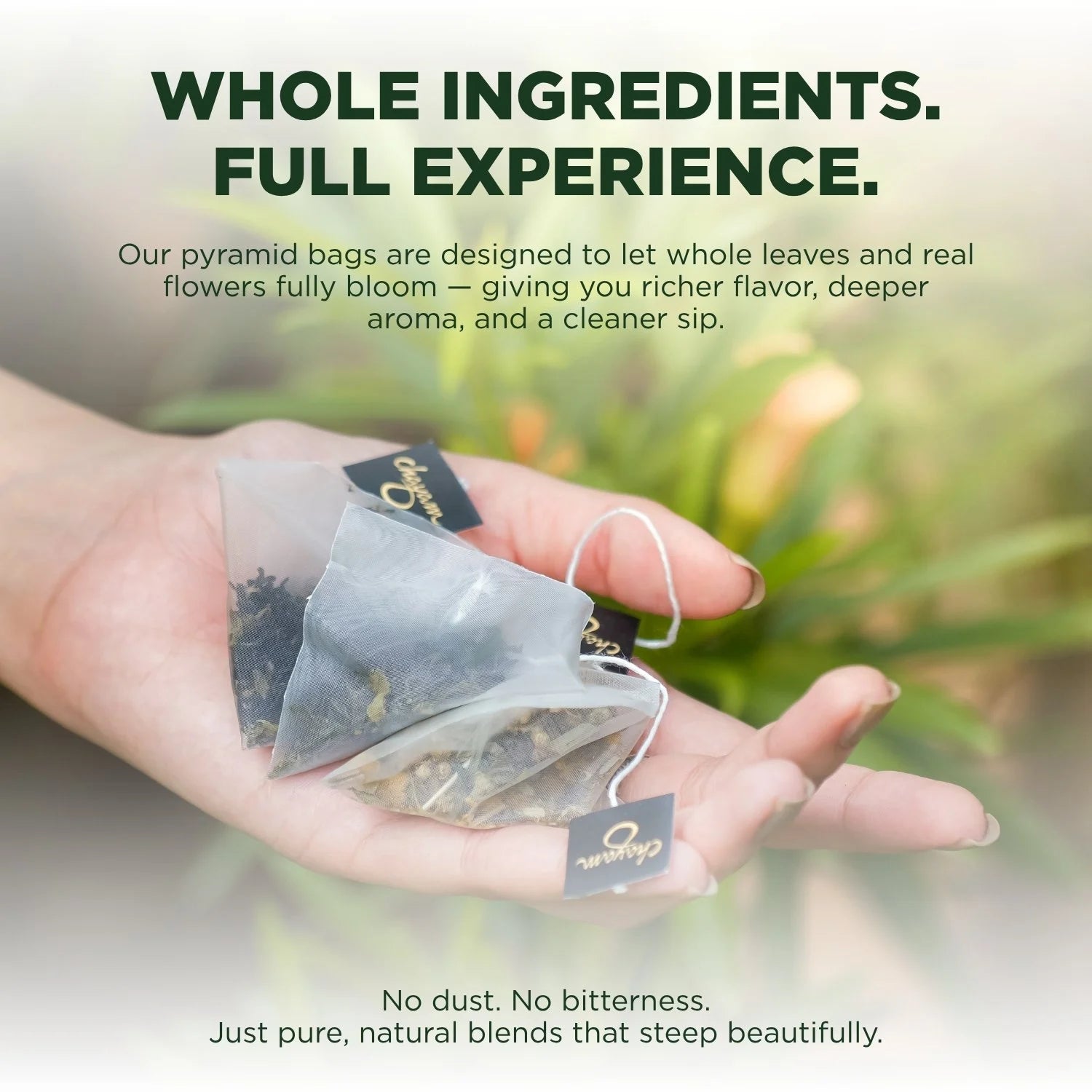 - 48 pyramid tea bags (6 flavours × 8 each) - Premium assorted green tea gift box
