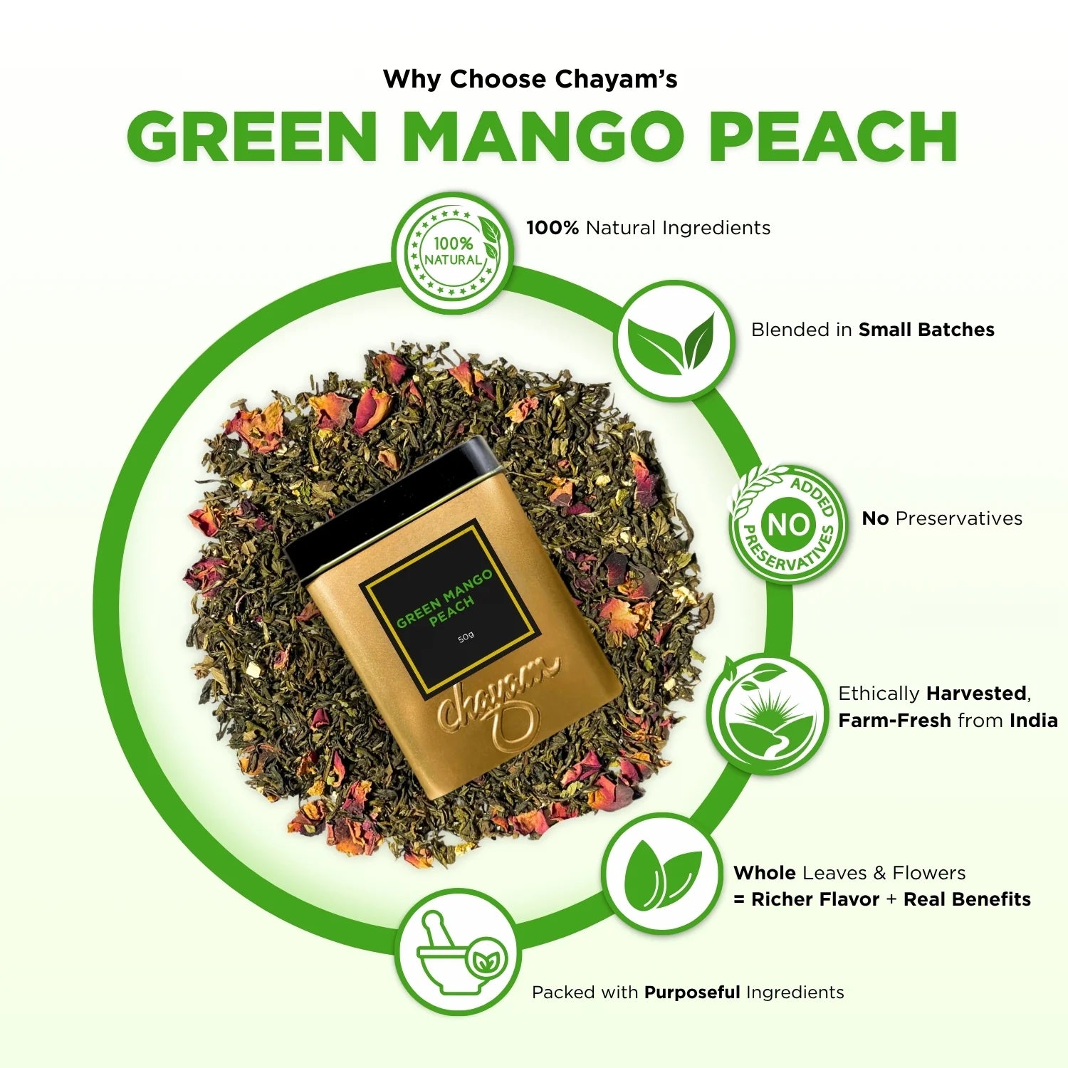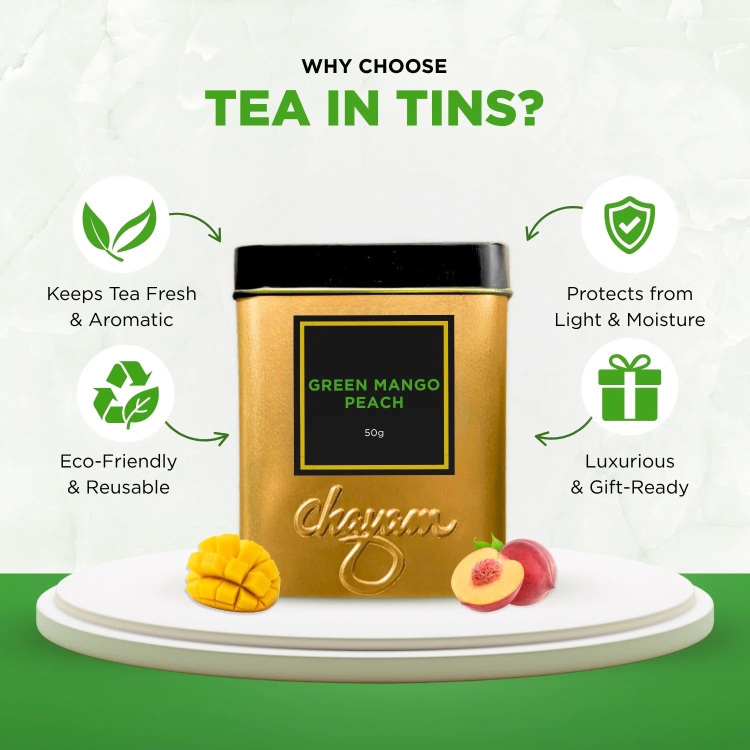 Mango Peach Green Tea is a refreshing treat, beautifully packaged in a 50g tin caddy. Ideal for gifting or daily enjoyment, it’s perfect for a bright, uplifting tea moment.