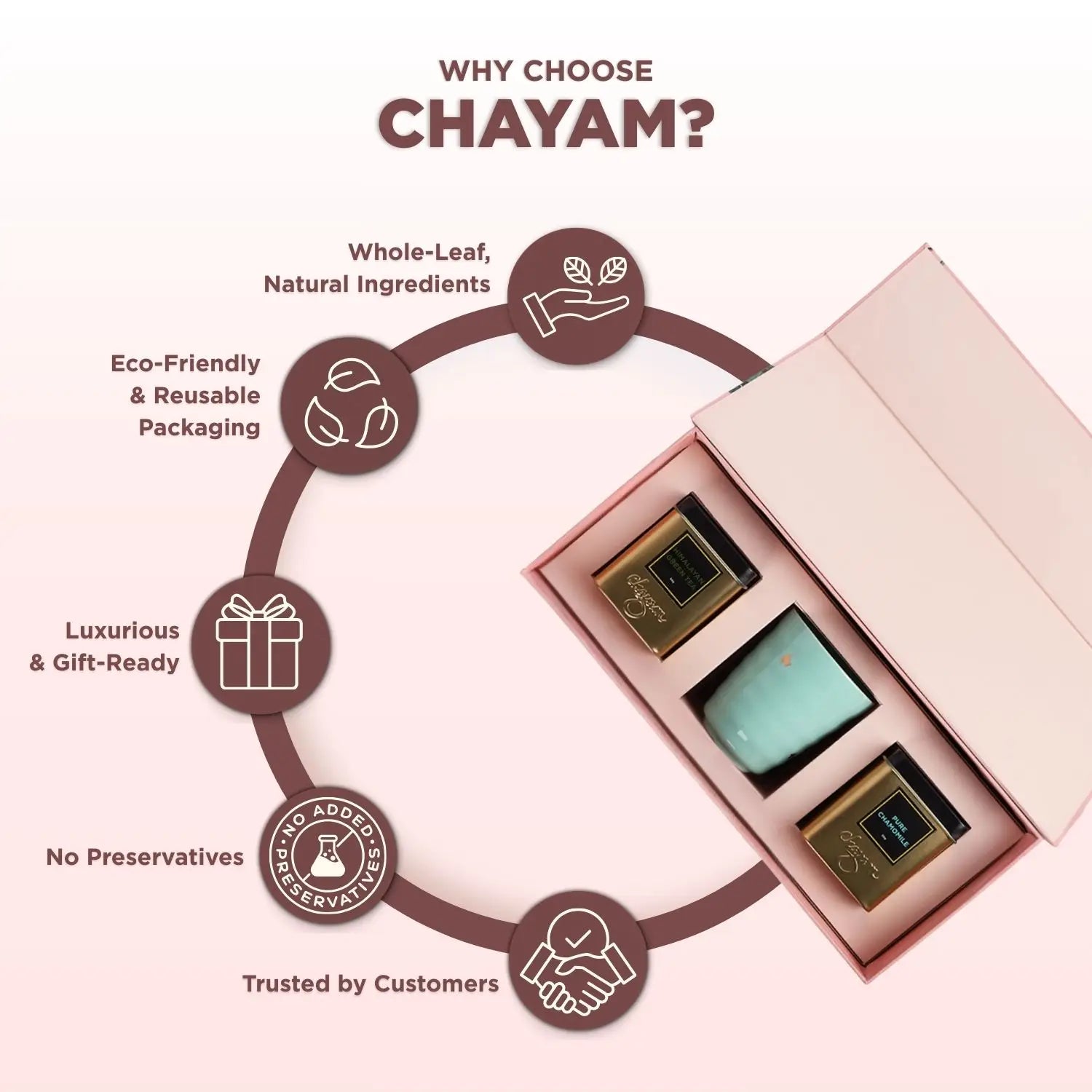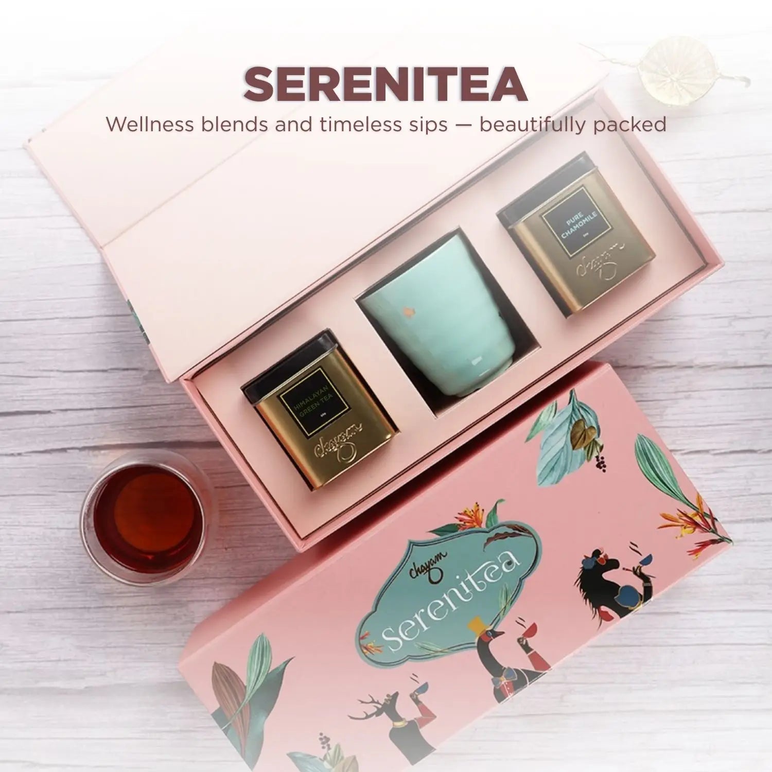 The Serenitea Gift Box by Chayam Tea is a heartfelt gift of calm and connection. Featuring Himalayan Green and Chamomile teas in elegant tins with a gold-embossed kulhad, it’s crafted for moments of togetherness. Ideal for weddings, anniversaries, or festive occasions, this box blends wellness with tradition. A meaningful way to show care, it turns every cup into a shared memory of warmth and gratitude.