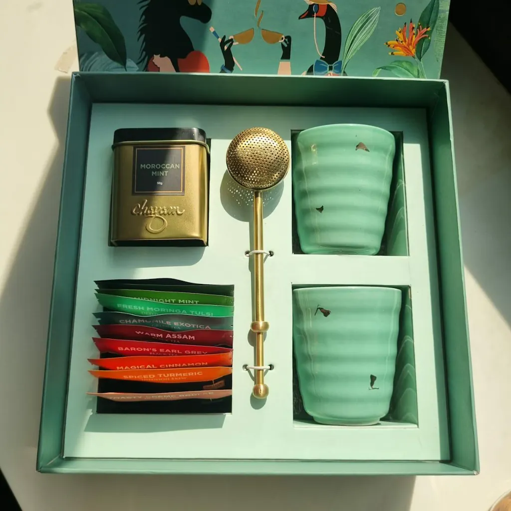 With Chayam Tea’s Sip & Savour Hamper, gifting becomes an experience of care and connection. Thoughtfully crafted with two gold-embossed kulhads, a premium brass infuser, and a selection of fine teas, it brings tradition and wellness together in one elegant box. Perfect for weddings, anniversaries, or corporate occasions, this hamper shows thoughtfulness beyond material gifts. More than tea, it is a celebration of togetherness — two cups, one story, countless memories.