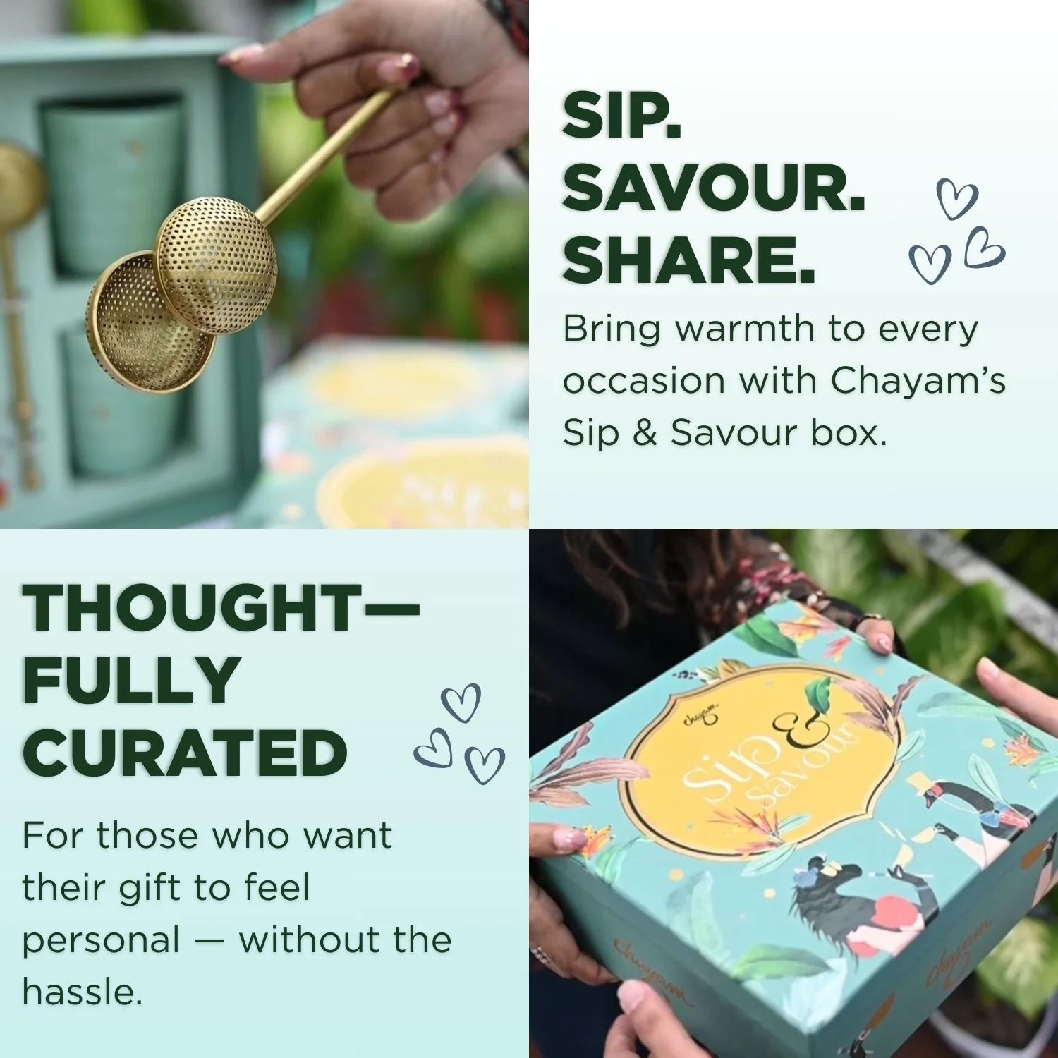 With Chayam Tea’s Sip & Savour Hamper, gifting becomes an experience of care and connection. Thoughtfully crafted with two gold-embossed kulhads, a premium brass infuser, and a selection of fine teas, it brings tradition and wellness together in one elegant box. Perfect for weddings, anniversaries, or corporate occasions, this hamper shows thoughtfulness beyond material gifts. More than tea, it is a celebration of togetherness — two cups, one story, countless memories.